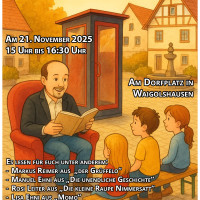 Zum diesjährigen Bundesweiten Vorlesetag laden wir alle Kinder, Familien und Bücherfreunde herzlich auf den Dorfplatz in Waigolshausen ein. Am 21. November 2025 findet von 15:00 Uhr bis 16:30 Uhr ein buntes Vorleseprogramm an der neu errichteten Büchertelefonzelle statt. Vier engagierte Bürgerinnen und Bürger werden aus bekannten Kinderbüchern vorlesen: